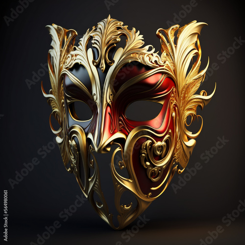 Naklejka premium Opulent Black Mask with Gold Embellishments - Generative AI