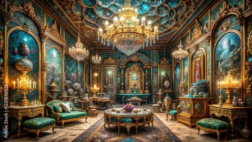 © udomsak, Obraz premium Opulent chamber filled with glittering gemstones and ancient relics