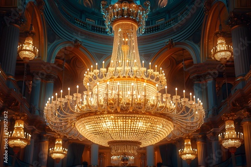 © panu101, Obraz premium Opulent Chandelier Illuminates Lavish Ballroom with Refined Sophistication