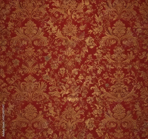 Fototapeta premium Opulent damask floral wallpaper, deep crimson & gold, elegant, rich, vintage