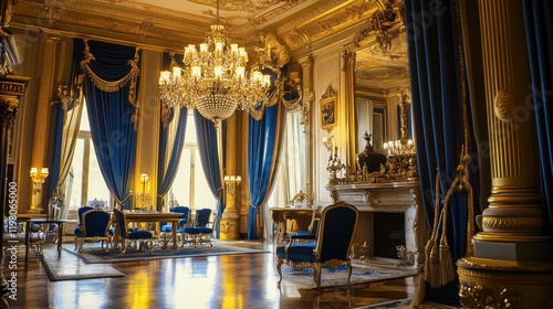 Obraz premium Opulent Gold and Blue Palace Interior: A Glimpse into Royal Grandeur