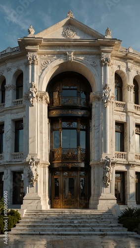 © claudunia, Obraz premium Opulent home with a marble facade and grand architecture.