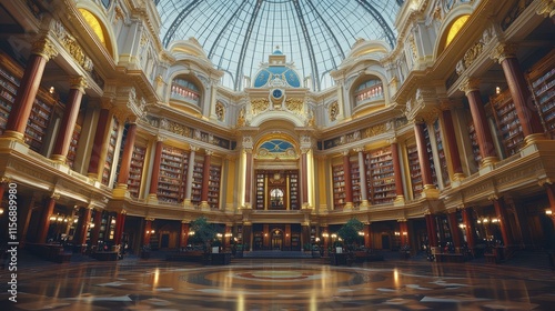 © Zaenal, Obraz premium Opulent interior library with books and vaulted dome ceiling.