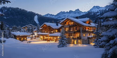 © Thanthara, Naklejka premium Opulent ski resort with world-class slopes, luxurious chalets, and premium après-ski activities for a lavish winter escape
