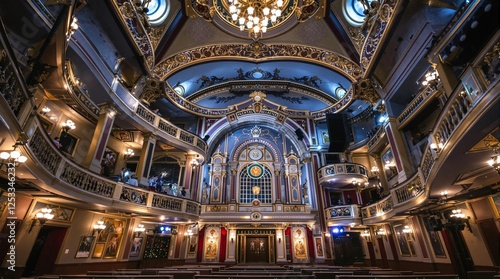 © Nadiya, Obraz premium Opulent theater interior with grand chandeliers and intricate architecture