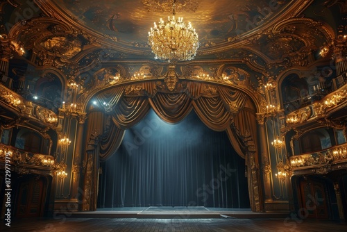 Obraz premium Opulent Theater Stage with Chandelier. Luxurious theater stage with grand...