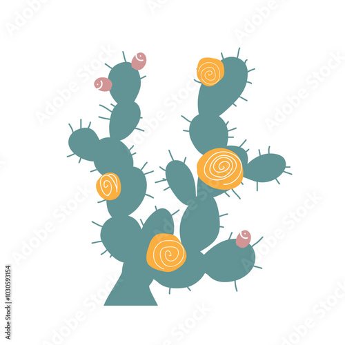 © Toltemara, Obraz premium Opuntia cactus, doodle isolated illustration. Cartoon prickly pear plant vector.
