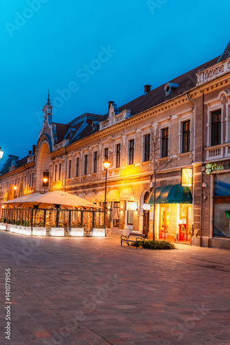 © Zedspider, Naklejka premium Oradea, Romania with historic buildings in Union Square , The Capital of Art Nouveau. Western Transylvania in Romania. Historical cultural city in europe
