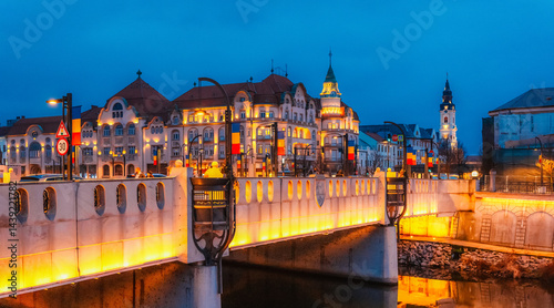 Naklejka premium Oradea, Romania with historic buildings in Union Square , The Capital of Art...