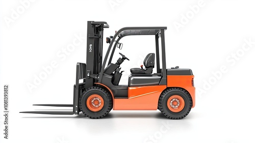 © Ariestia, Fototapeta premium Orange and Black Forklift with Raised Forks