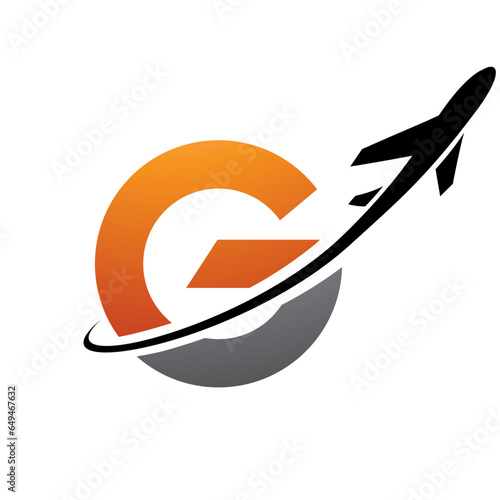 Obraz premium Orange and Black Uppercase Small Letter G Icon with an Airplane