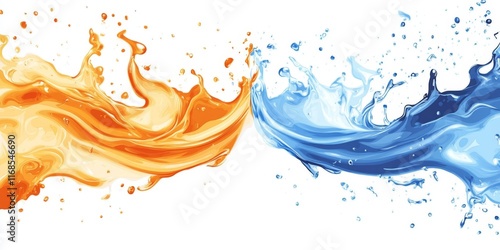 © Adri, Fototapeta premium Orange and blue liquid splashes collide. (1)