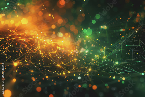 © PHAISITSAWAN, Fototapeta premium Orange and Lime green glowing abstract geometric lines.