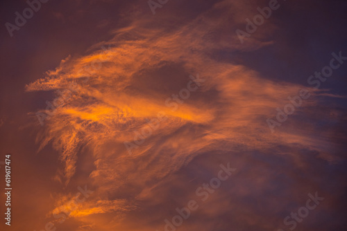 Fototapeta premium Orange and Purple Clouds Resemble Bird In The Sky