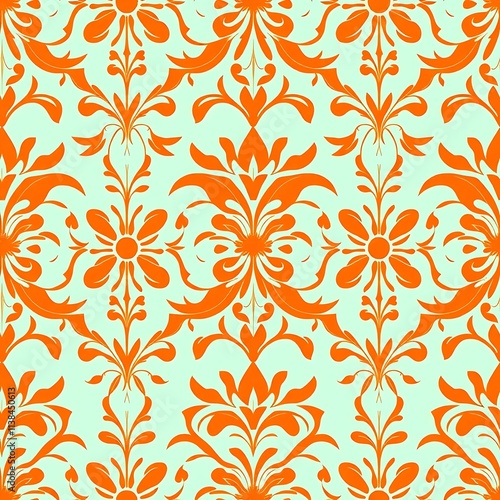 © Michel, Fototapeta premium Orange and Teal Damask Pattern