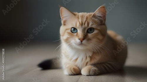 © Wirestock, Obraz premium Orange and white cat with blue eyes lounging on the floor