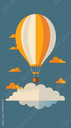 © Adobe Contributor, Obraz premium Orange and White Hot Air Balloon Flying Through the Sky With Clouds