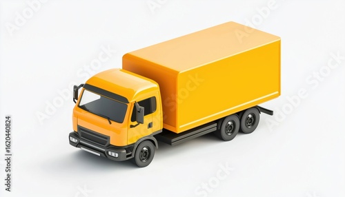 © Andrii, Fototapeta premium Orange And Yellow Truck: Vehicle With Unmarked Body, Mockup. Realistic Car With Shadow For Transporting Goods And Delivering Parcels By Logistics Company Services.
