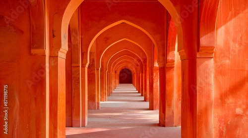 © Michal, Fototapeta premium Orange arches, building, architecture, interior design, entrance