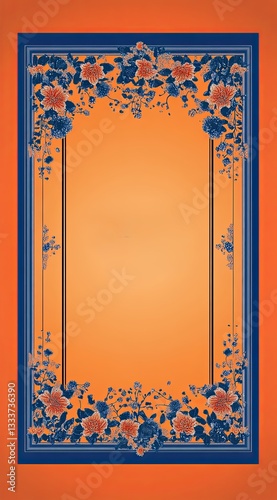 © DnQajik, Obraz premium Orange background image with blue patterned edges