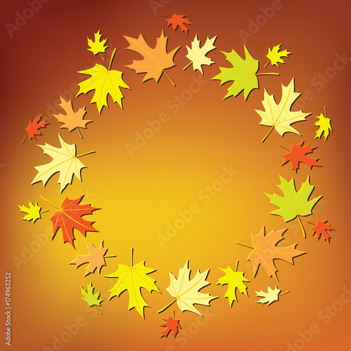 Fototapeta premium orange background with round frame - vector colorful autumn leaves
