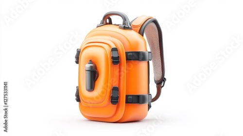 © Stocker, Fototapeta premium Orange Backpack with Water Bottle in Isolated White Background. Generative AI