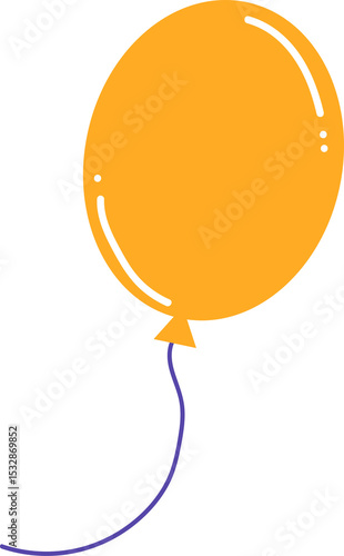 Fototapeta premium Orange balloon floating in flat design with glossy highlights, purple cord, transparent background