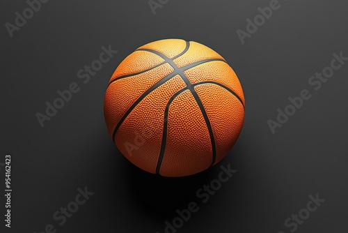 © NpicArt, Fototapeta premium Orange basketball with black seams on black background