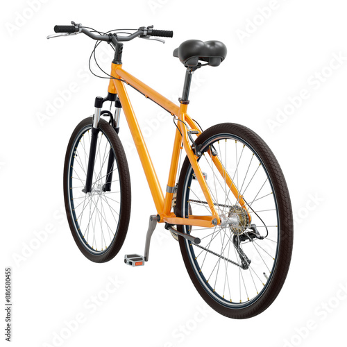 Obraz premium Orange bicycle, side back view. Black leather saddle and handles. Png clipart...