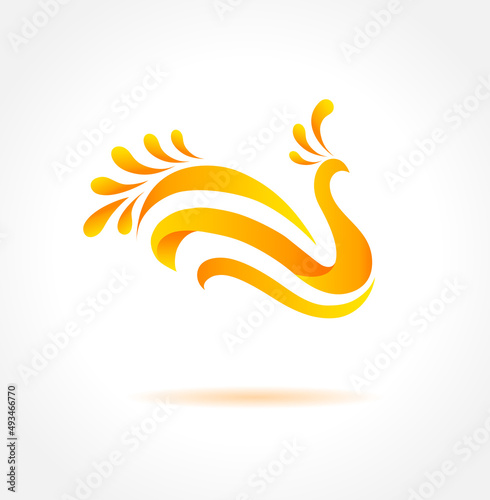 © portarefortuna, Naklejka premium Orange bird. Creative symbol of happiness and fortune