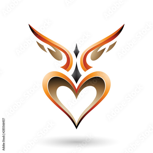 Fototapeta premium Orange Bird Like Winged Heart with a Shadow Vector Illustration
