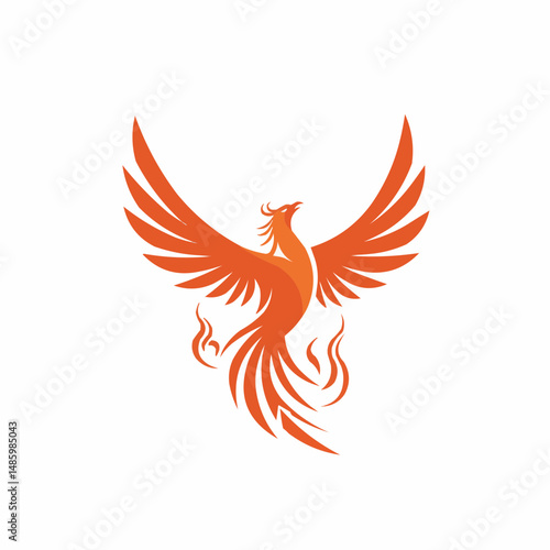 © Elsha, Fototapeta premium Orange bird with wide spread wings. Its beak is open and its head faces to the right