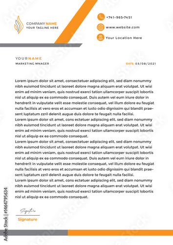 Fototapeta premium Orange Black Ash And White color Personalized Letterhead Template vector...