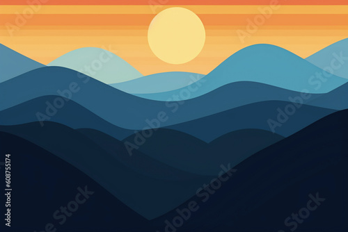 Fototapeta premium orange blue gradient mountain nature background. AI Generative