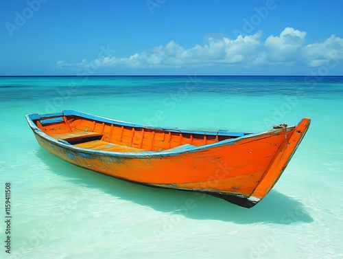 Naklejka premium Orange Boat Floating in Calm Turquoise Water