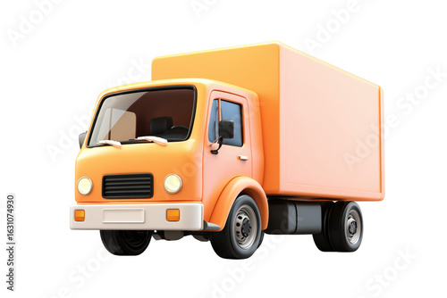 © imagify, Fototapeta premium Orange box truck with a cargo container and black wheels isolated on a transparent background vehicle