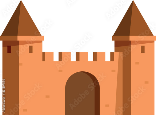 Naklejka premium Orange brick castle with two towers and a gate, offering protection and...