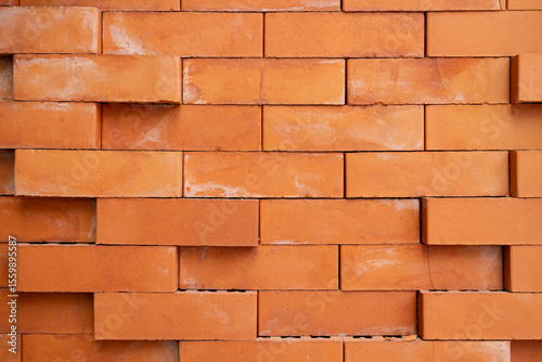 © Wongsakorn, Obraz premium Orange Brick Wall with Rough Texture. Perfect for backgrounds, construction themes, architectural designs, and texture overlays.