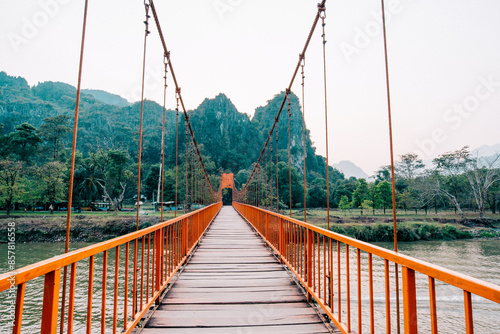 © pinglabel, Obraz premium Orange bridge over song river Landmark in Vang Vieng,Laos