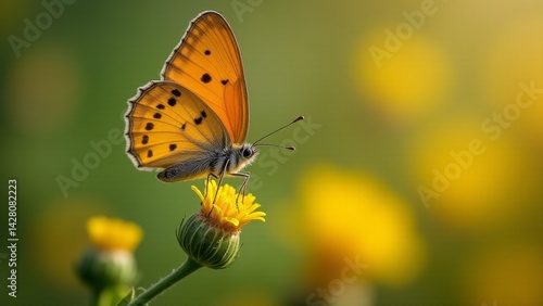 © Gayan, Fototapeta premium Orange Butterfly Resting On Yellow Flower
