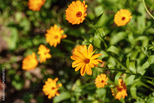Fototapeta premium Orange calendula flowers in the garden.