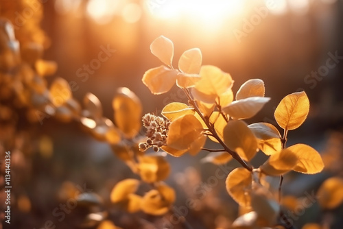 © AVADA, Fototapeta premium Orange calming aura rural landscape. Jesienna łąka, astry o wschodzie słońca, tapeta.
