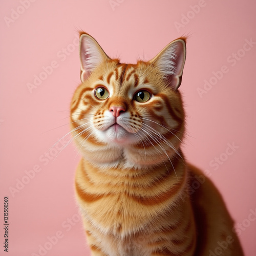 Fototapeta premium orange cat look dignified on coral backdrop