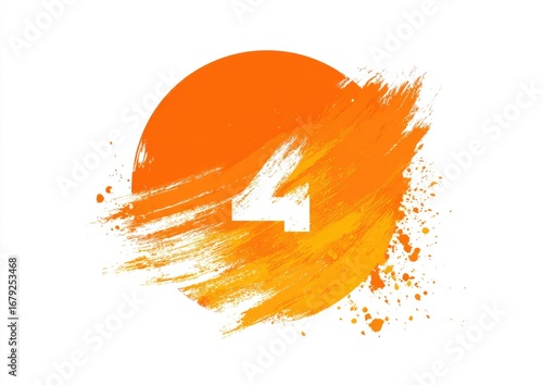 © Akbar, Fototapeta premium Orange circle with a white number four