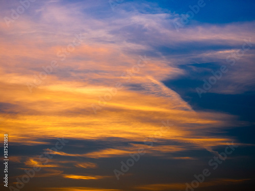 Fototapeta premium Orange clouds and blue sky at sunset