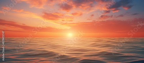 Obraz premium Orange clouds at sunset over the ocean creating a picturesque scene with a copy space image
