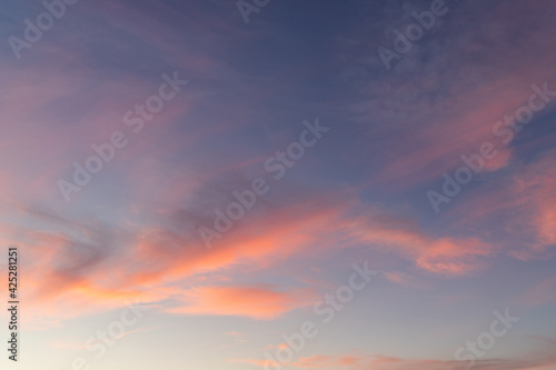 Obraz premium Orange clouds on blue sky at sunrise time.