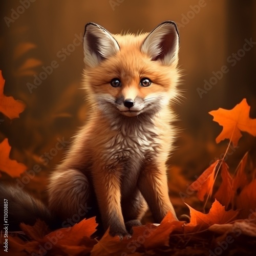 © MiltonKumar, Obraz premium Orange color baby fox animal images Generative AI