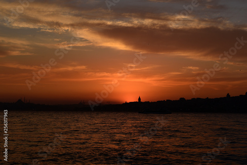 Naklejka premium Orange color sunset in Istanbul bosphorus