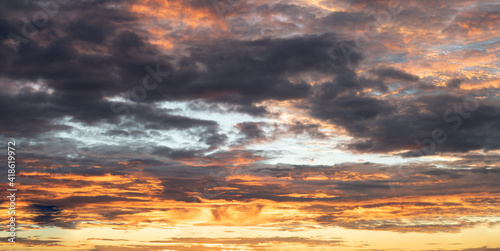 Fototapeta premium Orange colored sky with dramatic dark clouds